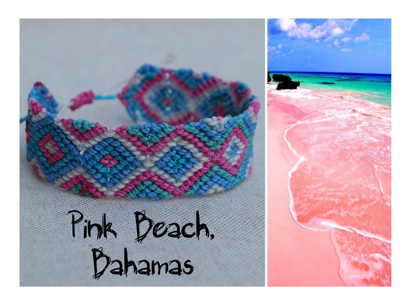 This bracelet is part of the "Wanderlust" collection and is inspired by the romantic pink beaches of the Bahamas islands.