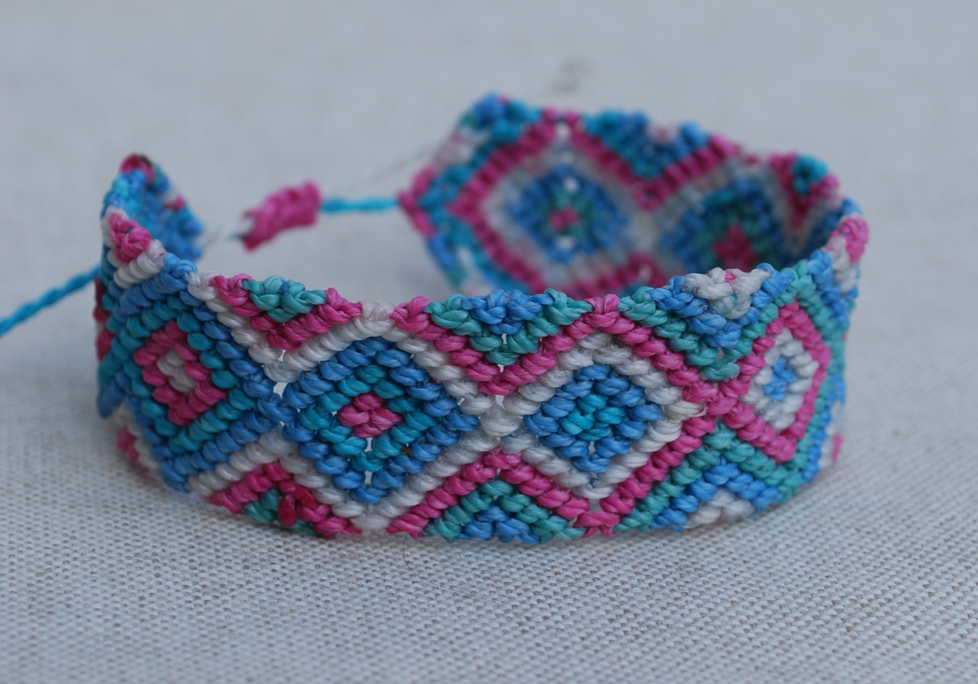 ▼ This bracelet has a sliding knot to adjust the size.