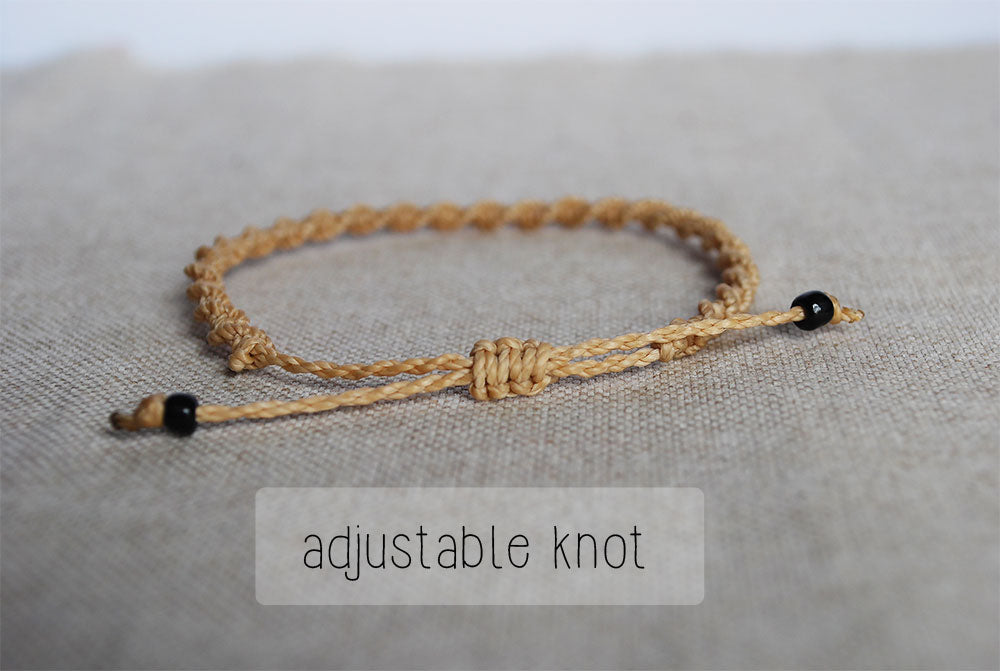 Reef Knot bracelets are light, fresh, waterproof and have an adjustable closure to fit any wrist.