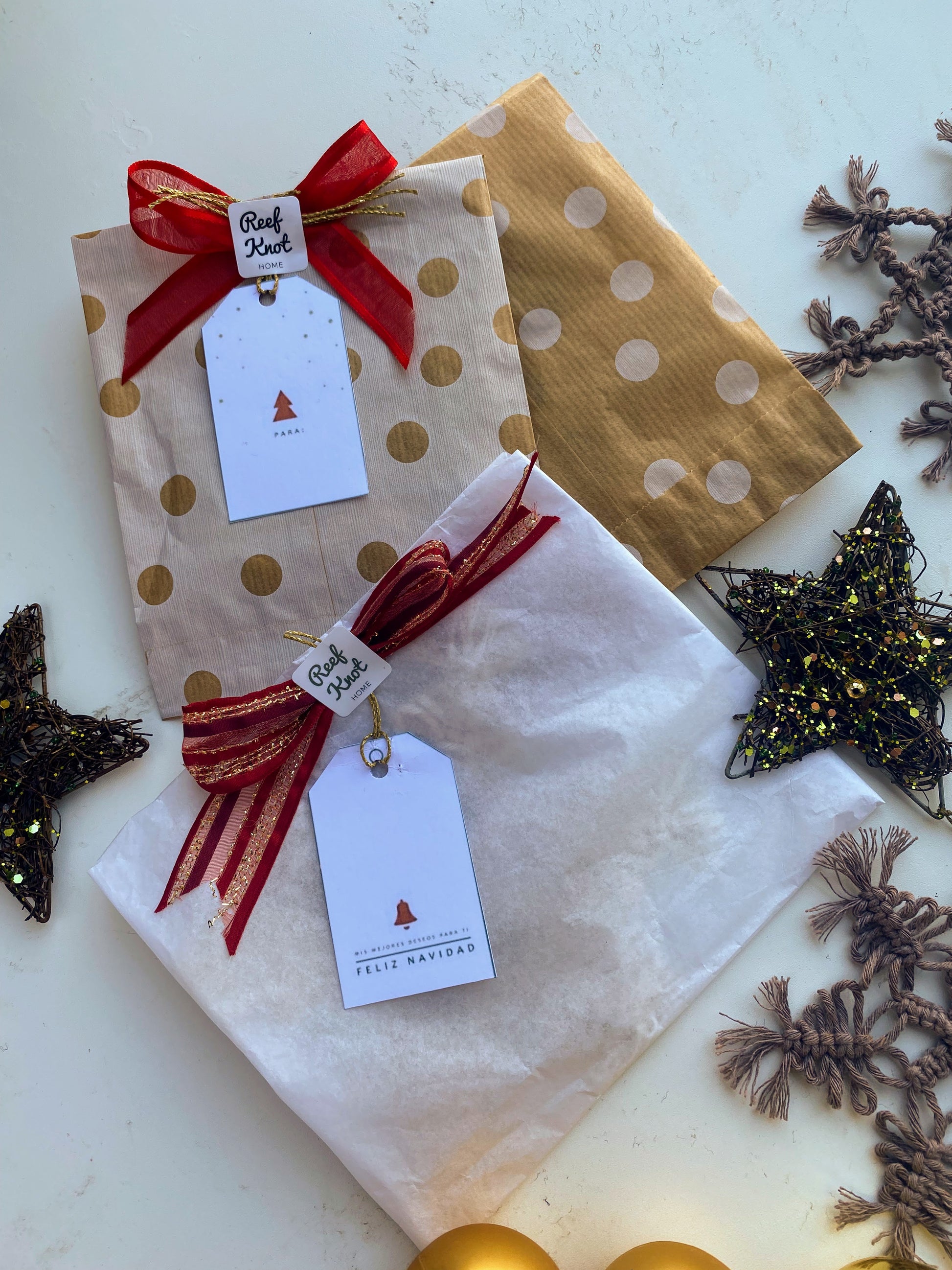 It is packaged with a golden string thanks to which it can be hung on the tree (the color stands out very well among the green branches) or on the walls or used to decorate Christmas parcels and packages.