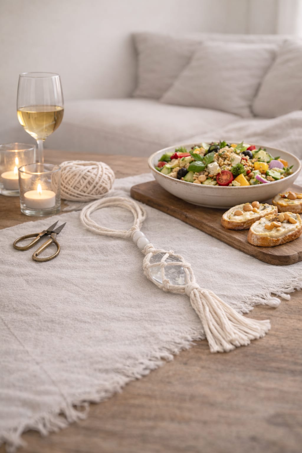 Una serata creativa tutta al femminile, tra macramè, cristalli e apericena curata con amore.