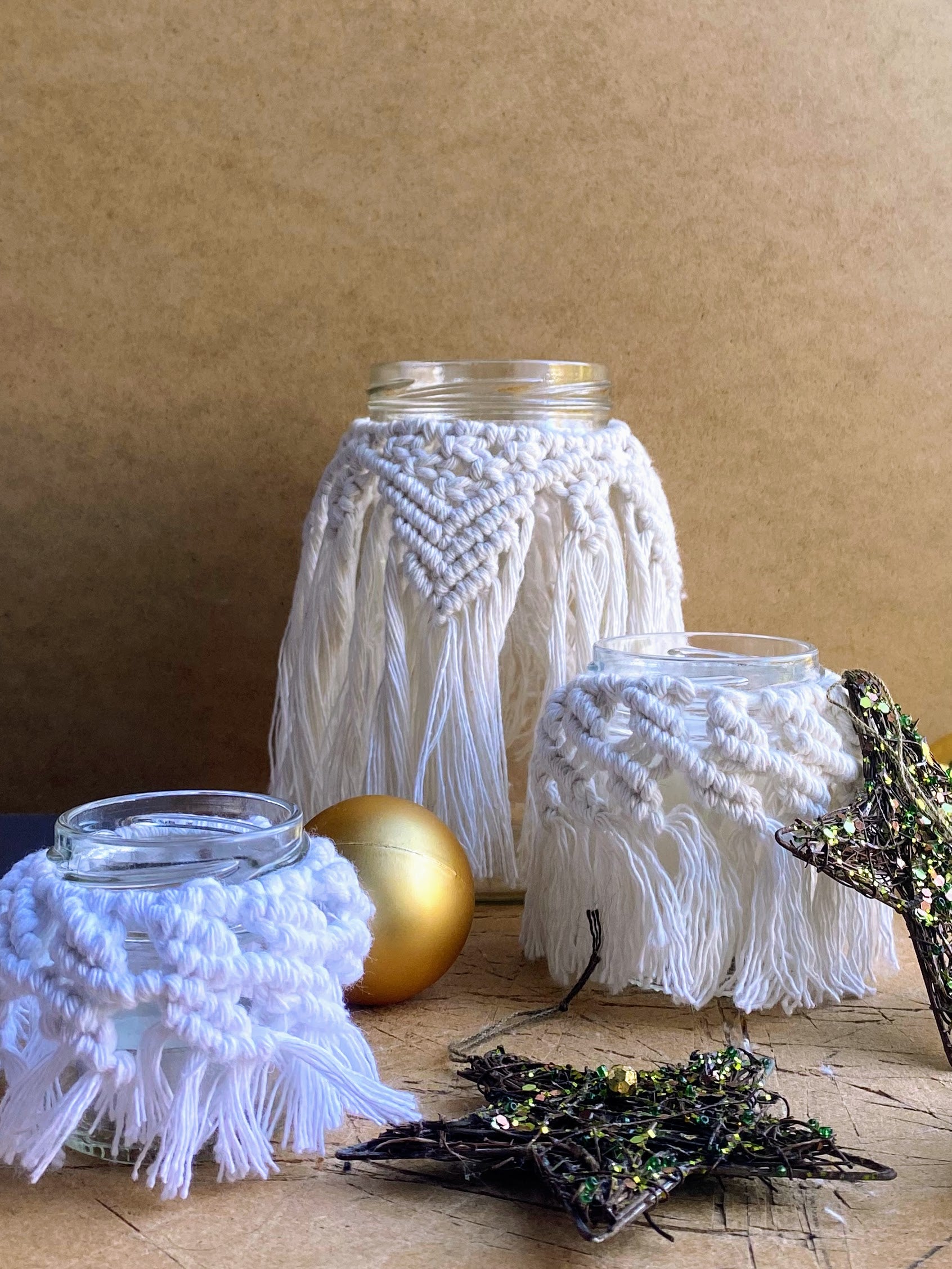 Con una decorazione a macramè puoi trasformare un semplice vaso di vetro in una romantica candela, un originale porta fiori o un contenitore per qualsiasi cosa.