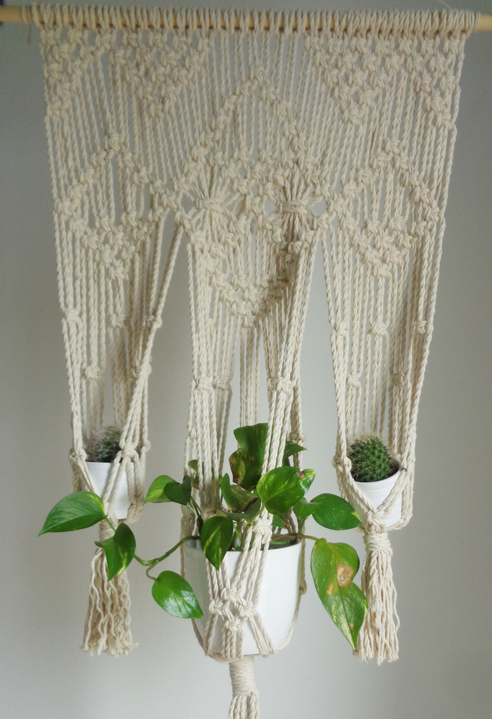Rus è un arazzo portavasi a macramè caratterizzato da una design tribale e realizzato in cotone organico.