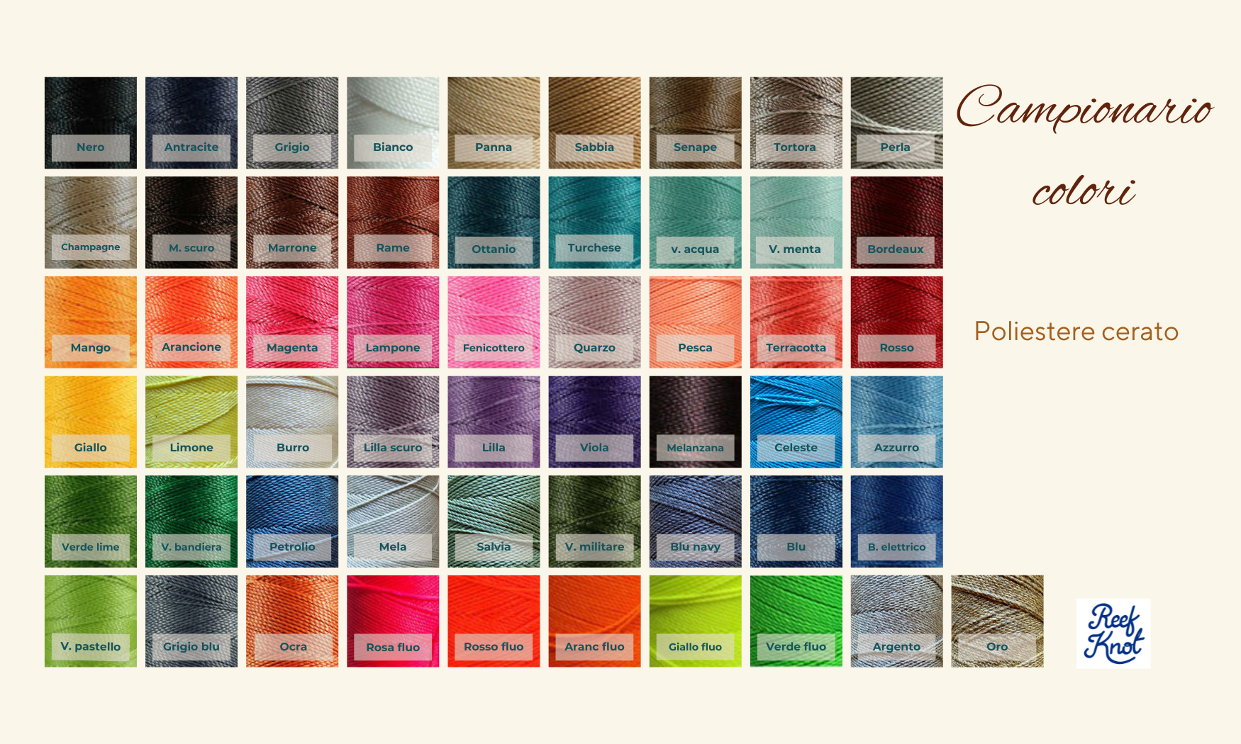 ▼ Realizzati con cordino cerato di alta qualità, resistente all'acqua e al tempo, lavabile, non macchia né stinge. Privo di componenti metalliche.