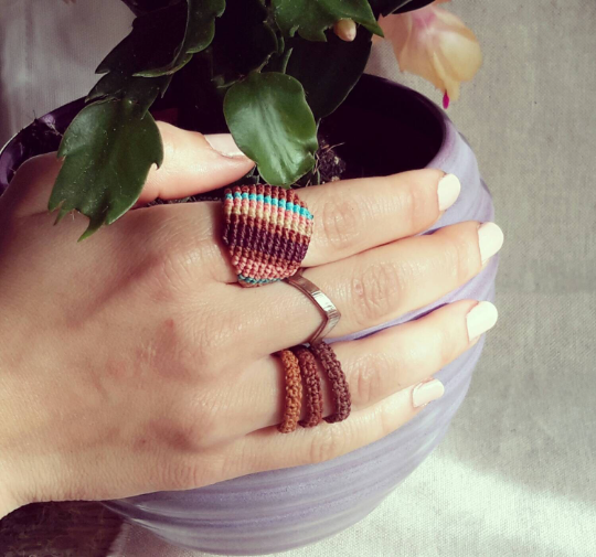 Quest'inserzione vale per TRE bellissimi anelli sottili a fascia, annodati a mano a macramè, colori a scelta.